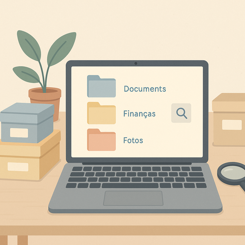Muita gente se perde porque salva tudo na “Área de Trabalho” ou em “Downloads”. Uma organização simples já resolve 80% do problema.
